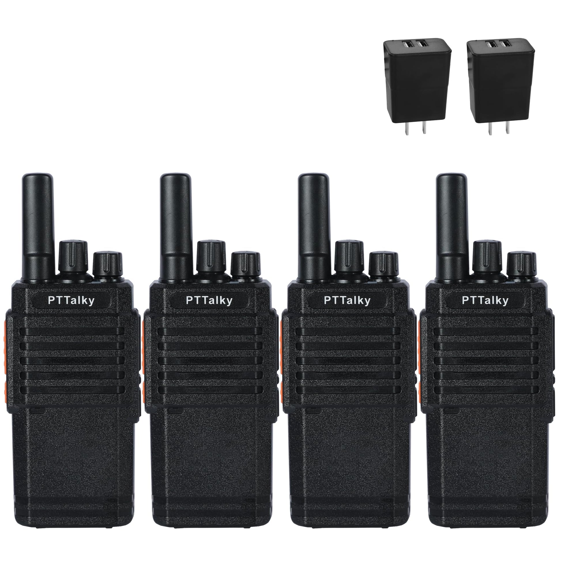 PTTalky FR2 Walkie Talkies Long Range, Rechargeable Handheld Walkie Talkies for Adults, USB-C Charging, VOX, License Free,for Trip Hiking Cruise Camping 4 Pack Black